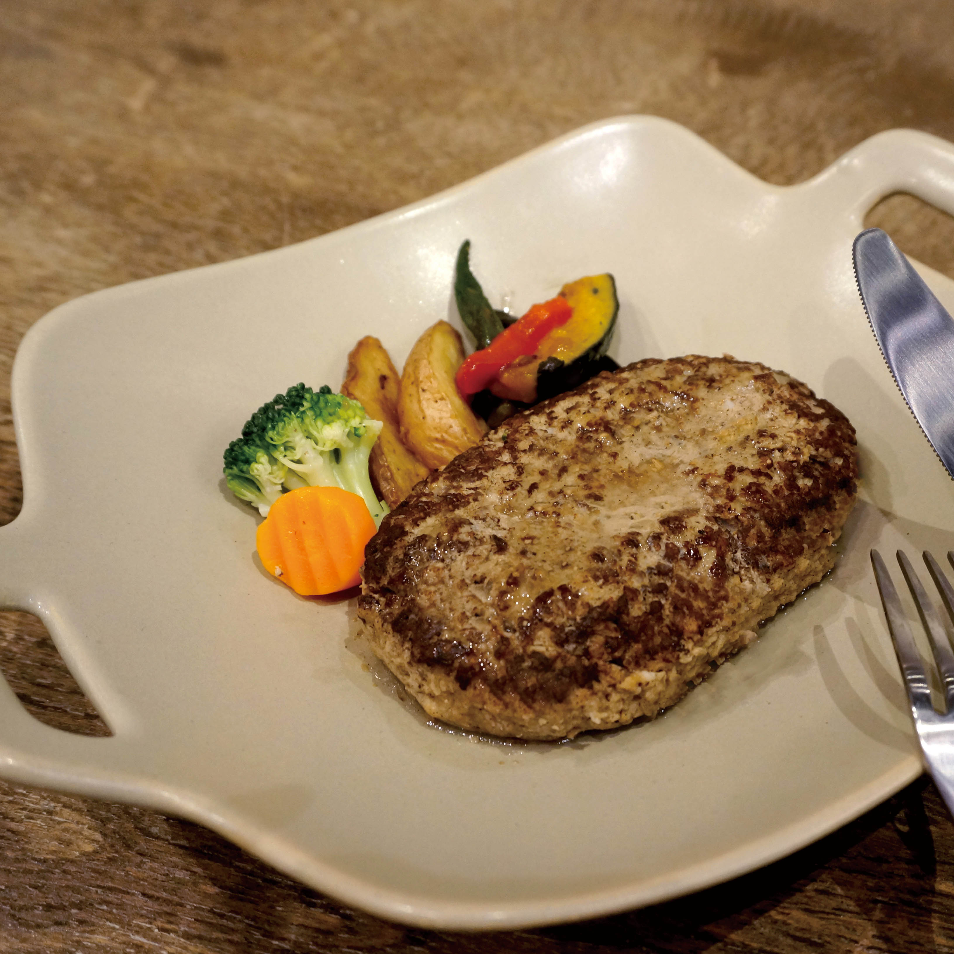 直火OKの特性を生かして、ハンバーグやステーキ肉を焼いて食卓へサーブしたり、深さがあるのでカレーやパスタ皿としてもお使いいただけます。